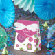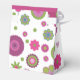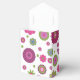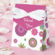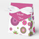 Custom snazzy abstract purple and green flower pattern on favour boxes with "thank you" text (option to delete text or customise with your own).