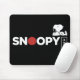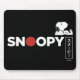 Snoopy relaxes against a rock on top of his name in English and Japanese.