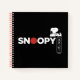 Snoopy relaxes against a rock on top of his name in English and Japanese.
