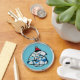 This is an eye-catching, officially licensed Peanuts Snoopy Keychain—the perfect accessory to personalize your keys, backpack, or purse. The piece features a vibrant, distinct illustration of Snoopy prepared for the cold, wearing a blue puffer coat adorned with a unique geometric 'gem' pattern and a festive red-and-white knit winter hat.