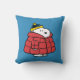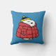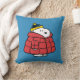 This cozy square throw pillow features the classic Snoopy character dressed warmly for the cold weather. The design showcases Snoopy wearing a large, puffy red winter coat and a blue and yellow knit cap, set against a solid, bright blue background. This pillow is a cheerful and functional home décor accent, perfect for adding a touch of winter warmth and Peanuts charm to a couch, bed, or armchair during the holiday season and beyond.