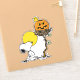 Celebrate Halloween with this charming design featuring Snoopy, the beloved beagle, gazing up at the warm glow of a full autumn moon. Woodstock sits cheerfully atop a playful jack-o'-lantern nestled in his tree-top perch. With classic Peanuts charm, this design captures the magic of the Halloween season, perfect for adding a touch of nostalgia and whimsy to any holiday occasion. Ideal for fans of Snoopy and timeless Halloween fun!