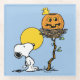 Celebrate Halloween with this charming design featuring Snoopy, the beloved beagle, gazing up at the warm glow of a full autumn moon. Woodstock sits cheerfully atop a playful jack-o'-lantern nestled in his tree-top perch. With classic Peanuts charm, this design captures the magic of the Halloween season, perfect for adding a touch of nostalgia and whimsy to any holiday occasion. Ideal for fans of Snoopy and timeless Halloween fun!