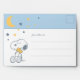 This charming mailing piece is perfect for quickly sending baby shower thank you notes or simple event announcements. It features a decorative top band in a soft color, accented by classic celestial shapes. The main space includes a sweet, sketch-style illustration of Snoopy, reinforcing the popular "over the moon" theme associated with new babies. The rest of the surface is designed for convenient mailing, including clearly designated lines for the recipient's address and a space for postage, offering a nostalgic and simple way to send out personalized baby mail.