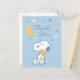 Send a truly personal note of thanks with this charming Peanuts Snoopy and Woodstock thank you postcard. The front features the heartwarming "Over the Moon" illustration with Snoopy embracing Woodstock, set against a calming light blue celestial background. Unlike a standard card, the back is designed in a classic postcard style, featuring a designated area for a handwritten message and address, making it easy for parents to quickly pen a personal, heartfelt note to each guest after the gender-neutral or baby boy baby shower. This is a simple, beautiful, and efficient way to send gratitude.