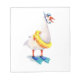 Watercolor painting of White Goose in flippers with swim goggles and snorkelling mask.