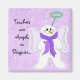 A cute snow angel with a purple scarf and soft purple wings. A green halo. The saying can be changed as desired.