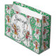A Large Gift Bag In Green With Designed Boys And Girls Snow Angels