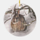 This holiday ornament features a typical winter scene: a sweet brown cottontail bunny rabbit with big ears is huddled under a pine tree seeking shelter from the snow. Won't he look cute hanging from your Christmas tree?
