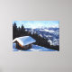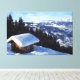 Snow capped mountain hut canvas print
