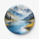 Snow capped mountains and a lake paper plate