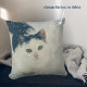 Throw pillow "Friendship will keep you warm in winter". Cute black and white cat with with rose nose on the fresh snow for pet lovers.