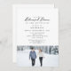 Snow Couple Photo Rehearsal Dinner Invitation. Simple. White. Winter wedding.