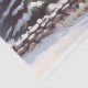 Decoupage tissue paper featuring a cosy rustic cabin nestled among evergreen trees, snow drifts, and with mountains in the background. Perfect for DIY crafts, furniture decoupage projects, and scrapbooking.