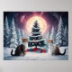 Snow Covered Christmas Tree with Cats Poster