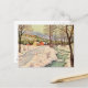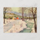 Lovely vintage illustration of a sunny and snowy country tree-lined road, stream running next to it and house and barn in the distance. Perfect for a note or even a Christmas card.