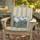 SNOW-COVERED EVERGREEN BOUGHS WITH PINE CONE OUTDOOR CUSHION