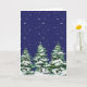 Three, snow-covered evergreen trees are superimposed on a twilight blue background as snow gently falls on the scene. Beautiful holiday image for your holiday greetings.