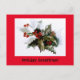 Beautiful snow covered holly postcard you can customise for specific holiday, or remove the greeting for a seasonal winter postcard. Besides white, colours are dark green and red.