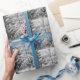 Make your gifts stand out in wrapping paper featuring a snow-covered maple tree. The snow photo repeats in a half-drop pattern. The most beautiful winter scenes often occur during snowstorms as in this original black and white photograph. Completely lined with snow, the branches of a large barren maple tree reach across the image.