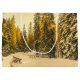 Large gift bag with a beautiful nature photograph. An isolated winter path with tall snow covered pine trees.