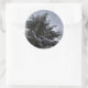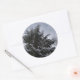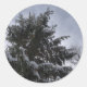 First snowfall of the season. Close-up looking upwards of beautiful Spruce tree with pine cones and pretty cloudy blue sky. Original Photography by TamiraZDesigns.