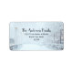 Christmas and winter labels feature a beautiful snow covered street lined with lampposts and trees.*