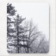 Immerse yourself in a winter wonderland with the vertical black and white photograph, Snow-covered Trees. The treetops form a strong diagonal with the tallest tree starting at the upper left corner of the image and the shortest tree at the bottom third of the right edge. The two trees on the left are evergreens while the rest are leafless deciduous trees; all are covered with snow. The sky above them is white.