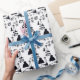 Snow hat, skis, goggles, & snowflakes on wrapping paper . Perfect for a snow day party.
