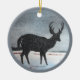 Linda Baysinger Peck's watercolor painting of a buck deer silhouette, standing in falling snow. Just add your own text, to personalise. Image © Linda Baysinger Peck All Rights Reserved