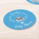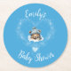 Snow Excited Blue Teddy Bear Baby Shower Round Paper Coaster