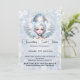 A beautiful and magical glowing portal has a bright shining star inside it and is framed by delicate white snowflakes. An angelic fair skinned fairy pixie princess with large blue eye and long white hair is standing in front of the portal with her ethereal white wings spread wide open. She too is framed by soft white falling snow dancing in the air against a dusky pale blue background. This downloadable and printable invite is ideal for a fairytale; fairy; winter wonderland, quinceanera, 16th mythical birthday or wedding celebration. Simply customise the templates to suit your requirements.