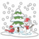 Snow Falling on Cardinal, Snowman and Pine Tree