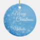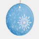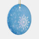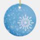 Snow flakes on a winter blue background, personalized ornament.