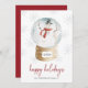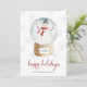 This cute and whimsical holiday card features a beautiful watercolor snowman in a snow globe with pale grey snowflakes and an elegant 'happy holidays' in handwritten script. The back of the card includes a message for personalising or leave it blank to delete the message.