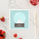 Very cute artwork of a snowman in a snow globe, on aqua and decorative text that says merry Christmas.