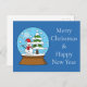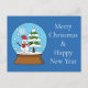 Snow Globe w/ Snowman and Pine Tree | Personalise Holiday Postcard