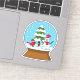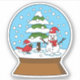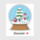 An illustration of a snow globe that features a very cute snowy mountain landscape with red cardinal wearing a red santa hat, snowman wearing a red ribbon and santa hat, and pine trees. This cute cartoon snowdome design is a gift idea for winter and christmas holiday season lovers, bird and snow lovers, and waterglobe and crystal ball lovers.
