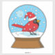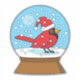 An illustration of a snow globe with a cute red cardinal wearing a red santa claus bonnet under a snow in a bright blue sky. This cute cartoon christmas waterglobe design is a gift idea for winter holiday lovers and, bird and animal lovers.