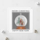 Square Christmas design with a beautiful snow globe featuring people with ski and sled and evergreen tree. Merry Christmas & Happy New Year holiday design on a unique shaped square card! Edit your name on the back and the current year on the front.