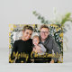 Snow Gold Foil Holiday Card. This elegant gold foil Merry Christmas postcard features a festive frame overlay of real gold foil snowflakes with gold foil text and script for personalising over a customisable family photo. The back includes a message for personalising on a forest green background. Find matching items in the Christmas Holiday Snowflake Collection.