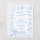 Celebrate love and new beginnings with our delightful "Snow in Love" all in one bridal shower invitation with pastel blue, winter themed, hand drawn illustrations. On the reverse side, you'll find templates for display shower and registry, including a qr code.