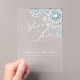 Celebrate love with our Snow in Love Bridal Shower Acrylic Invitation, featuring elegant watercolor snowflakes in soft dusty blue. The modern calligraphy script and silver glitter accents add a chic, festive touch, perfect for a winter wonderland bridal shower. This invitation beautifully combines a cosy winter theme with refined design elements, making it the ideal choice for a Christmas bridal celebration. Fully customisable texts allow you to make it truly personal.
