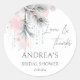 Snow in love winter bridal shower favour gift tags thank you favour stickers , watercolor pastel pink and grey  winter snowy pine branches with crystal garlands winter bridal shower thank you favour stickers, modern casual font