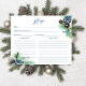 Snow in love winter bridal shower template recipe card, watercolor dusty blue winter berries on snowy pine branches snowflakes recipe card
