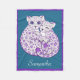 Two cuddling white snow leopard cubs with purple accents and spots on a cyan blue background are hugging and nuzzling each other. Personalise it with your own custom name. Original animal art by Alicia Marie.