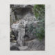 A beautiful photograph of a mother snow leopard stretching up to greet her cub who is resting on a rocky ledge. Customisable - add your own message with the type tool