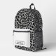Stylise your carryall with a classic black and white snow leopard print. Click the custom button to change the name.