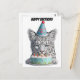 The snow leopard is AI generated. I thought it would be cute to have a snow leopard wearing a birthday hat and a birthday hat. On the inside I put Amy I hope you have a purrfect birthday. And on the back I put Three cheers to you Amy. The name Any is editable.