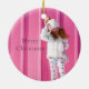This whimsical chic " peace on earth " christmas and holiday ornament features a snow globe on a light blue background. Inside the snow globe, there is a snow leopard which is trying to reach the gold star on top of the tree. There is another snow leopard is lying down in front of the snow globe. The reverse side features your photo. Personalize it for your needs. You can find matching products at my store.